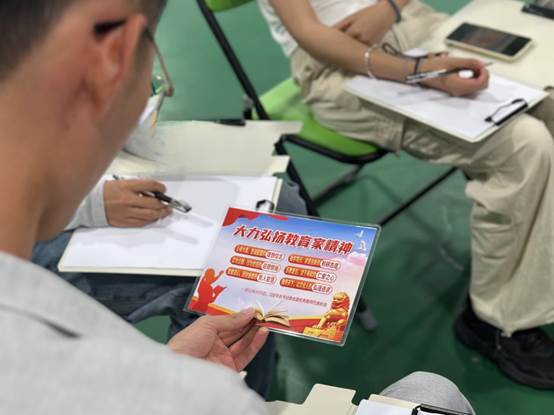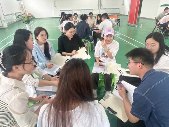 张老师通过带领大家一起学习了习近平总书记大力弘扬的教育家精神,各组根据六条教育家精神带来的感触各自起了组名,以“表达性连环自我介绍”的方式依次进行了自我介绍,在游戏中寻找个体与他人、与组织之间的联系,在潜移默化之中建立更深的连接,加深彼此的记忆点,在无形之中逐渐消除新员工之间的隔阂。