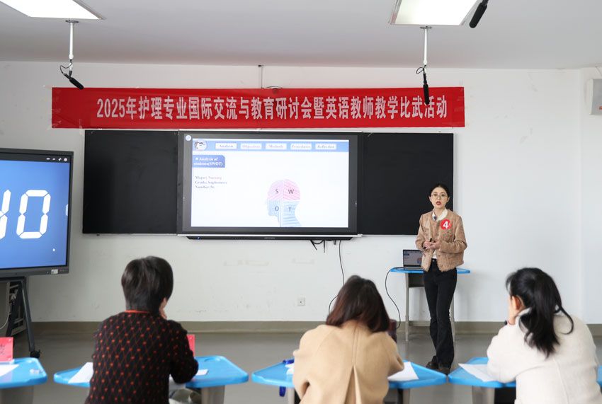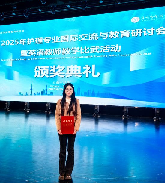 会议汇聚了来自国内外多所院校的护理及英语教育专家与骨干教师,共议教育创新,共促专业发展。在教学比武这一核心环节中,我校公共教学部英语教研室青年教师宫子雯以扎实的专业功底、清晰的授课思路和富有感染力的现场表现,呈现了一堂高水平的英语课。其精湛的教学设计和流利的英文表达,赢得了评委会专家的高度认可与现场同仁的一致好评,最终以第二名的成绩荣获大赛一等奖,彰显了我校青年教师的卓越风采,为学校赢得了荣誉。