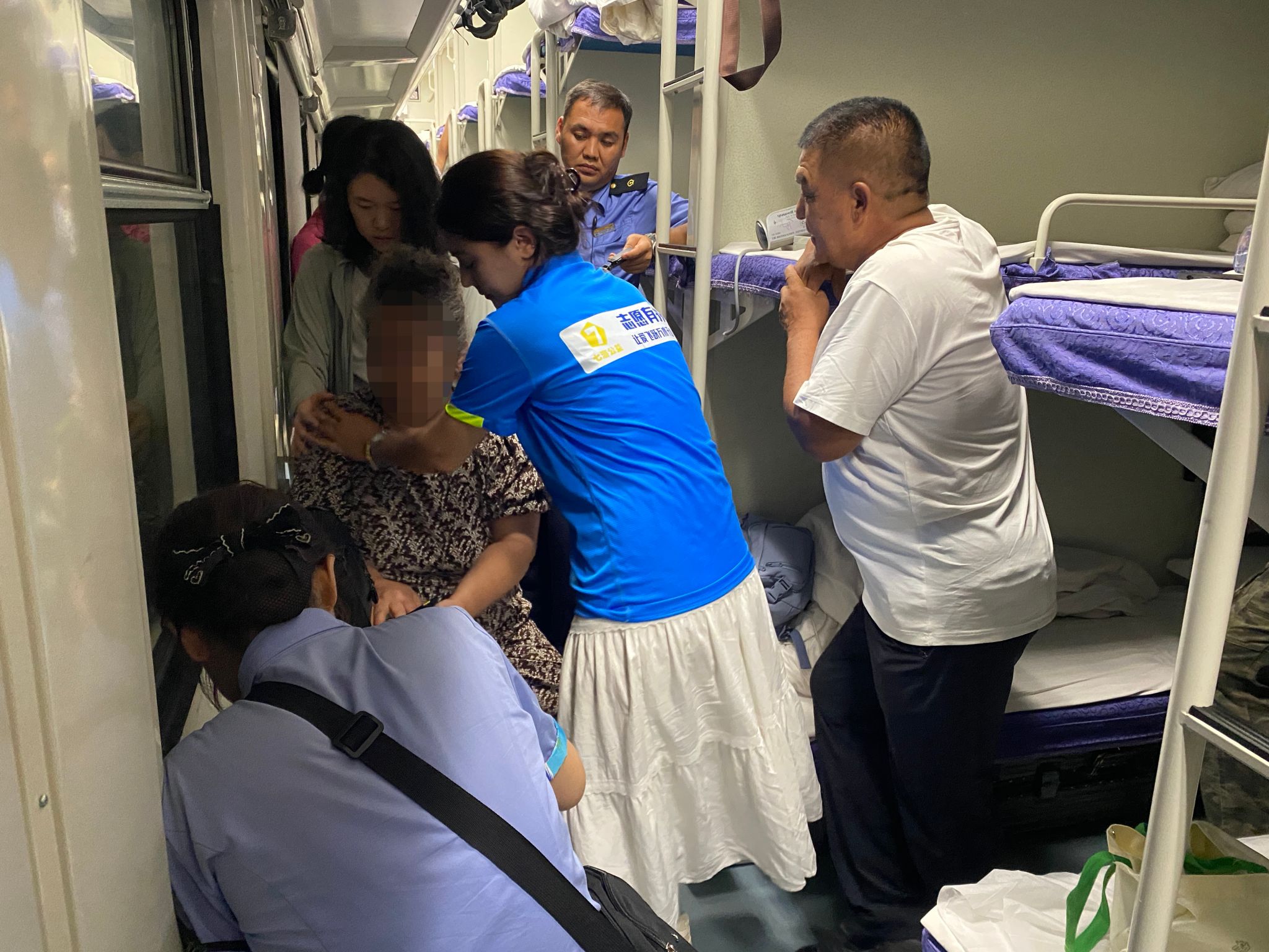 凌晨刚从新疆麦盖提县完成两周支教任务的我校教师宋翎玮和学生麦迪娜依等人听到列车广播急需医务人员,立即赶往现场。