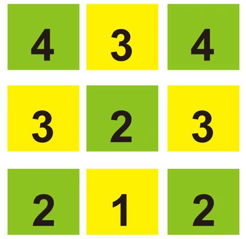 各队队员指定位置,纵向排列,按照抽签顺序先后依次派出球员参加。参赛队员在大禁区线正中间位置射门,每人3次机会,射入指定区域获得相应分数,被球网拦住或踢出指定区域不计分。九宫格分值分布图如下: