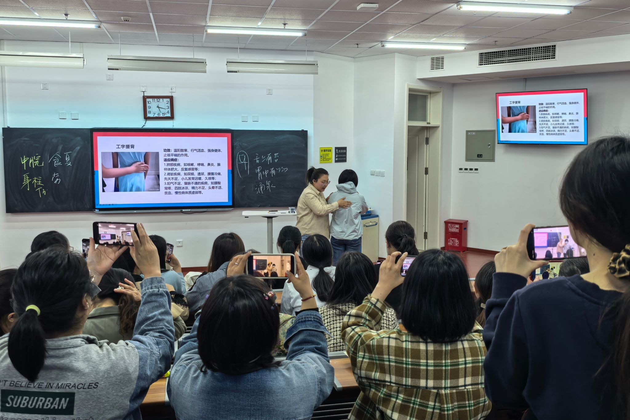 为满足学校教职工家庭保健需求,帮助教职工掌握科学实用的小儿推拿知识与技能,4月28日下午,学校工会和针灸推拿与康复保健系联合推出的教职工小儿推拿课堂于4号实训楼511室开讲。本次教职工小儿推拿课堂以“专业赋能 守护未来”为主题,通过中医文化传承与专业服务融合,为教职工家庭儿童健康成长注入暖心力量,学校90余名教职工报名参加本次系列课程。
